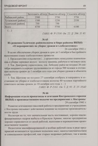 Информация отдела пропаганды и агитации Костромского горкома ВКП(б) о производственном подъеме на предприятиях г. Костромы. 29 сентября 1941 г. // ГАНИКО. Ф. Р-2. Оп. 1. Д. 656. Л. 72-73.