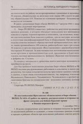 Из постановления Ярославских облисполкома и бюро обкома ВКП(б) № 1424 «О работе по приему, распределению и отправке на фронт посылок для бойцов Красной Армии и Военно-морского флота». 1 сентября 1941 г.