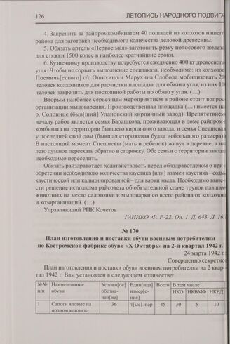 План изготовления и поставки обуви военным потребителям по Костромской фабрике обуви «X Октябрь» на 2-й квартал 1942 г. 24 марта 1942 г.