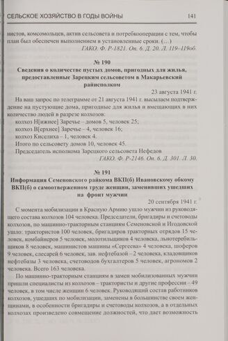 Информация Семеновского райкома ВКП(б) Ивановскому обкому ВКП(б) о самоотверженном труде женщин, заменивших ушедших на фронт мужчин. 20 сентября 1941 г. // ГАНИКО. Ф. P-202. Оп. 1. Д. 333. Л. 36.