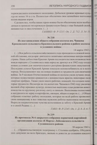 Из протокола № 6 закрытого собрания первичной партийной организации колхоза «8 Марта» Лобозовского сельсовета Сусанинского района. 30 апреля 1943 г. // ГАНИКО. Ф. 1598. Оп. 1. Д. 1. Л. 3.