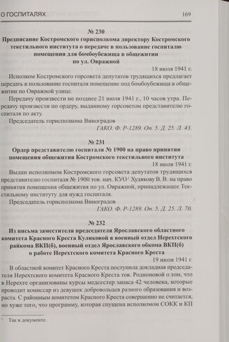 Из письма заместителя председателя Ярославского областного комитета Красного Креста Куликовой в военный отдел Нерехтского райкома ВКП(б), военный отдел Ярославского обкома ВКП(б) о работе Нерехтского комитета Красного Креста. 19 июля 1941 г. // ГАНИКО. Ф. Р-22. Оп. 1. Д. 622. Л. 28-28об.