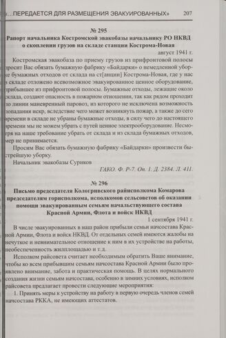 Письмо председателя Кологривского райисполкома Комарова председателям горисполкома, исполкомов сельсоветов об оказании помощи эвакуированным семьям начальствующего состава Красной Армии, Флота и войск НКВД. 1 сентября 1941 г. // ГАКО. Ф. Р-2180. Оп. 3. Д. 15. Л. 77.