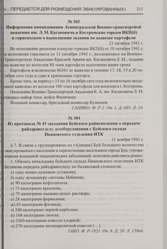Информация командования Ленинградской Военно-транспортной академии им. Л.М. Кагановича в Костромские горком ВКП(б) и горисполком о выполнении задания по вывозке картофеля. 21 октября 1941 г. // ГАНИКО. Ф. Р-2. Оп. 1. Д. 605. Л. 24.