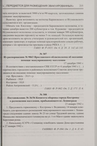 Постановление № 36/56 Комитета обороны города Костромы о размещении населения, прибывающего из Ленинграда. 23 января 1942 г. // ГАНИКО. Ф. Р-384. Оп. 1. Д. 6. Л. 42.