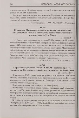 Из решения Мантуровского райисполкома о представлении к награждению медалью «За оборону Ленинграда» работников детского дома № 55 д. Угоры. 27 июля 1944 г. // ГАКО. Ф. Р-2181. Оп. 4. Д. 388. Л. 143.
