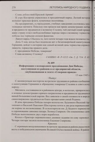Информация о всенародном праздновании Дня Победы, поступившая из районов и от предприятий области, опубликованная в газете «Северная правда». 13 мая 1945 г. // ГАНИКО. Ф. Р-3215. Оп. 2. Д. 714. Л. 66, 71-73.