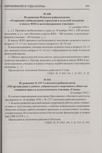 Из решения № 359 Галичского райисполкома «Об организации в районе добровольного спортивного общества учащихся школ и педагогического училища «Смена». 26 ноября 1943 г.