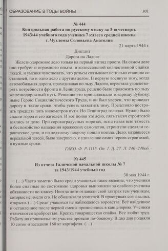 Контрольная работа по русскому языку за 3-ю четверть 1943/44 учебного года ученика 7 класса средней школы г. Чухломы Соловьева Анатолия. 21 марта 1944 г.