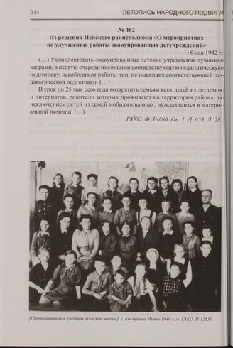Из решения Нейского райисполкома «О мероприятиях по улучшению работы эвакуированных детучреждений». 18 мая 1942 г. // ГАКО. Ф. Р-680. Оп. 1. Д. 653. Л. 28.