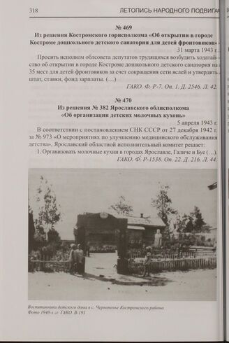 Из решения Костромского горисполкома «Об открытии в городе Костроме дошкольного детского санатория для детей фронтовиков». 31 марта 1943 г. // ГАКО. Ф. P-7. Оп. 1. Д. 2546. Л. 42.