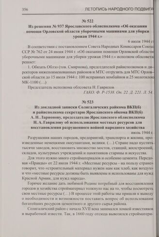 Из докладной записки Солигаличских райкома ВКП(б) и райисполкома секретарю Ярославского обкома ВКП(б) А.Н. Ларионову, председателю Ярославского облисполкома Н.А. Гаврилову об использовании местных ресурсов для восстановления разрушенного войной народного хозяйства. Июль 1944 г. // ГАНИКО. Ф. P-26. Оп. 1. Д. 1074. Л. 12-13об.