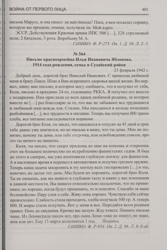 Письмо красноармейца Ильи Ивановича Яблокова, 1914 года рождения, семье в Судайский район. 25 февраля 1942 г. // ГАНИКО. Ф. P-954. Оп. 2. Д. 96. Л. 8-9 об.