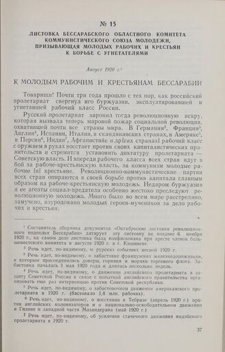 Главная Листовки коммунистического подполья Бессарабии. 1918-1940 Документы Листовка Бессарабского областного комитета Коммунистического Союза ...