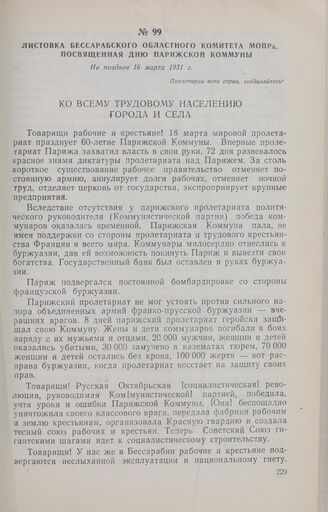 Листовка Бессарабского областного комитета МОПРа, посвященная дню Парижской Коммуны. Не позднее 16 марта 1931 г. // ЦГА МССР, ф. 679, оп. 1, д. 5693, л. 7, ротаторный оттиск.