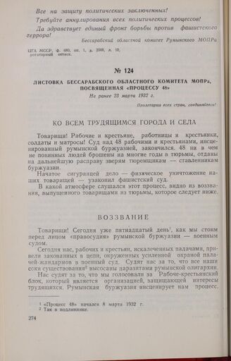 Листовка Бессарабского областного комитета МОПРа, посвященная «процессу 48». Не ранее 23 марта 1932 г.