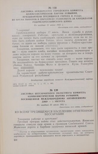Листовка Бессарабского областного комитета Коммунистической партии Румынии, посвященная Международному антивоенному дню 1 Августа. Не позднее 31 июля 1932 г.