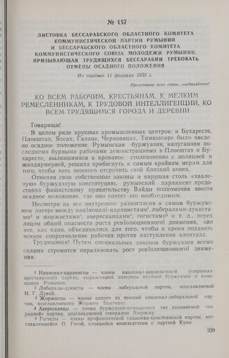 Листовка Бессарабского областного комитета Коммунистической партии Румынии и Бессарабского областного комитета Коммунистического Союза Молодежи Румынии, призывающая трудящихся Бессарабии требовать отмены осадного положения. Не позднее 11 февраля 1933 г. // ЦГА МССР, ф. 680, оп. 1, д. 3601, л. 126, ротаторный оттиск.