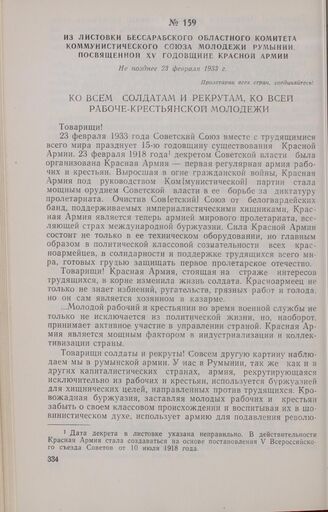 Из листовки Бессарабского областного комитета Коммунистического Союза Молодежи Румынии, посвященной XV годовщине Красной Армии. Не позднее 23 февраля 1933 г.