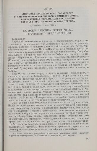 Главная Листовки коммунистического подполья Бессарабии. 1918-1940 Документы Листовка Бессарабского областного и Кишиневского городского комитет...