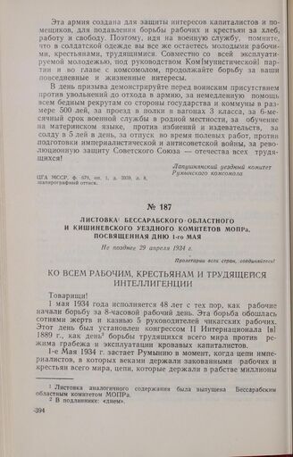 Листовка Бессарабского областного и Кишиневского уездного комитетов МОПРа, посвященная дню 1-го Мая. Не позднее 29 апреля 1934 г.