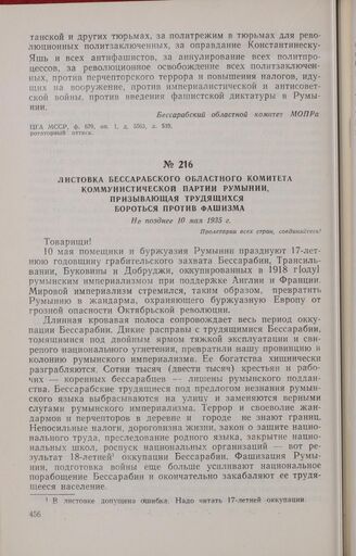 Листовка Бессарабского областного комитета Коммунистической партии ...