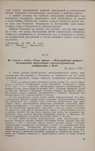 Из статьи в газете «Руде право» — «Бессарабский вопрос», посвященной предстоящей советско-румынской конференции в Вене. 26 марта 1924 г. // «Rudé Ргávо», № 73, 26 марта 1924 г. Перевод с чешского языка.