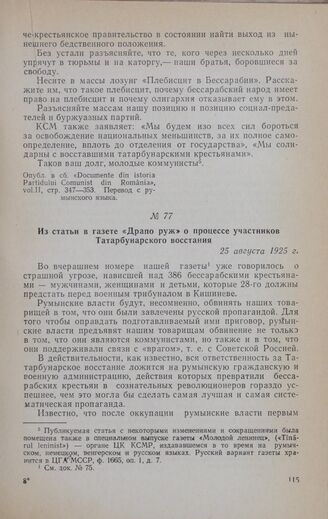 Из статьи в газете «Драпо руж» о процессе участников Татарбунарского восстания. 25 августа 1925 г. // «Le Drapeau rouge», № 200, 25 августа 1925 г. Перевод с французского языка.