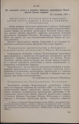 Главная Международная поддержка борьбы трудящихся Бессарабии за воссоединен... Документы Из газетного отчета о митинге протеста трудящихся Праги против бело...