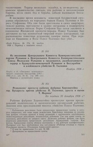 Из воззвания Центрального Комитета Коммунистической партии Румынии и Центрального Комитета Коммунистического Союза Молодежи Румынии к трудящимся, разоблачающего террор в буржуазно-помещичьей Румынии и Бессарабии и клеймящего убийство П. Ткаченко. Ноябрь 1926 г. // Опубл. в сб. «Листовки коммунистического подполья Бессарабии (1917-1940 гг.)», док. № 45, стр. 109-112. Перевод с румынского языка.
