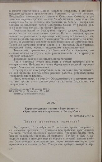 Корреспонденция газеты «Роте фане» — «Крестьянские выступления в Бессарабии». 13 октября 1931 г.