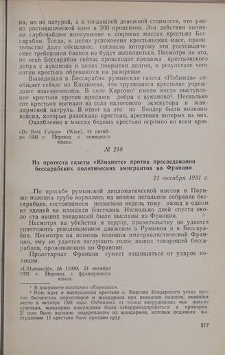 Из протеста газеты «Юманите» против преследования бессарабских политических эмигрантов во Франции. 21 октября 1931 г. // «L’Humanité», № 11999, 21 октября 1931 г. Перевод с французского языка.