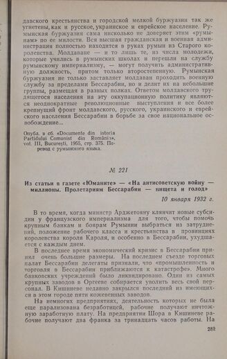 Из статьи в газете «Юманите» — «На антисоветскую войну — миллионы. Пролетариям Бессарабии — нищета и голод». 10 января 1932 г. // «L’Humanité», № 12080, 10 января 1932 г. Перевод с французского языка.