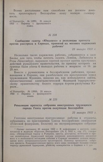 Резолюция протеста собрания иностранных трудящихся города Гента против оккупации Бессарабии. 23 января 1932 г. // «Красная Бессарабия», 1932, № 3, стр. 17.