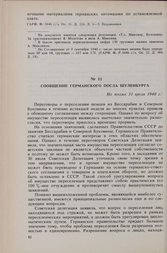Сообщение германского посла Шуленбурга. Не позже 31 июля 1940 г. // АВП РФ. Ф. 06. Оп. 2. П. 15. Д. 156. Л. 43-44. Подлинник.