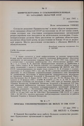 Просьба уполномоченного ЦК ВКП(б) и СНК СССР. 31 мая 1941 г. // Центральный Архив Федеральной Службы Контрразведки Российской Федерации. Коллекция документов. Подписанная копия.