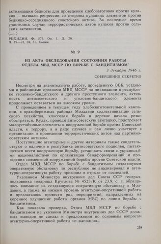 Из акта обследования состояния работы отдела МВД МССР по борьбе с бандитизмом. 3 декабря 1946 г. // ГАРФ. Ф. Р-9478с/ч. Оп. 1с. Д. 973. Л. 72-83. Заверенная копия.