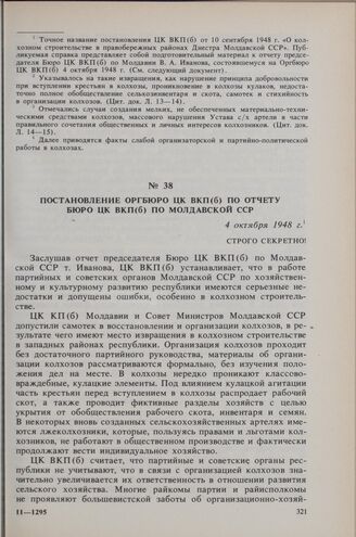 Постановление Оргбюро ЦК ВКП(б) по отчету Бюро ЦК ВКП(б) по Молдавской ССР. 4 октября 1948 г. // РЦХИДНИ. Ф. 17. Оп. 118 Д. 176. Л. 94-99. Протокол № 381 заседания Оргбюро ЦК ВКП(б), § 10. Заверенная копия.