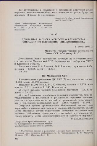 Главная Пасат В.И. Трудные страницы истории Молдовы. 1940-1950-е гг. — М.: ... Докладная записка МГБ СССР о результатах операции по выселению спец...