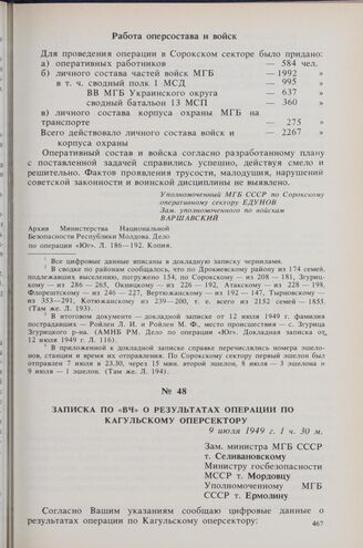Главная Пасат В.И. Трудные страницы истории Молдовы. 1940-1950-е гг. — М.: ... Записка по «ВЧ» о результатах операции по Кагульскому оперсектору. ...