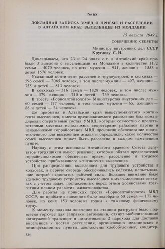 Главная Пасат В.И. Трудные страницы истории Молдовы. 1940-1950-е гг. — М.: ... Докладная записка УМВД о приеме и расселении в Алтайском крае высел...