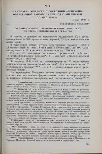 Из справки МГБ МССР о состоянии агентурно-оперативной работы за период с апреля 1944 по май 1946 гг. Июнь 1946 г.