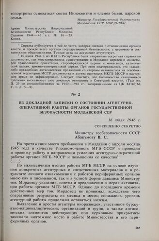 Из докладной записки о состоянии агентурно-оперативной работы органов государственной безопасности Молдавской ССР. 16 июля 1946 г. // Архив Министерства Национальной Безопасности Республики Молдова. Ф. 2. Оп. 40. Д. 1. Особая папка. Л. 52, 57-62. Копия.