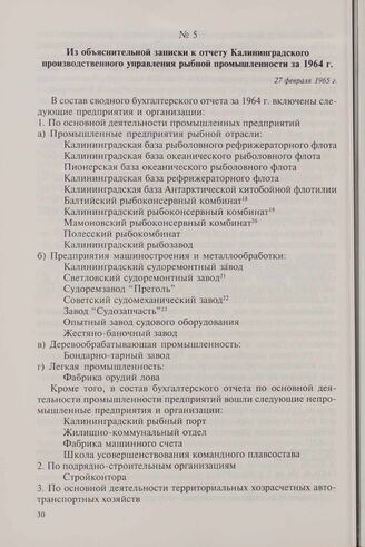 Из объяснительной записки к отчету Калининградского производственного управления рыбной промышленности за 1964 г. 27 февраля 1965 г. // ГАКО. Ф. 258, оп. 1, д. 213, л. 271-275, 299-302, 309-311.