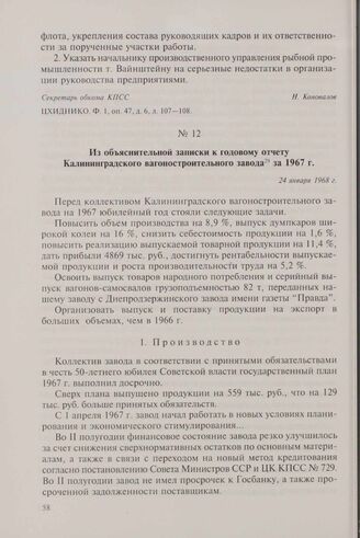 Из объяснительной записки к годовому отчету Калининградского вагоностроительного завода за 1967 г. 24 января 1968 г. // ГАКО. Ф. 192, оп. 8, д. 894, л. 1, 59-66.