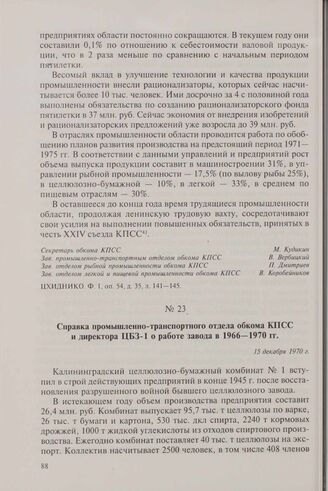Справка промышленно-транспортного отдела обкома КПСС и директора ЦБЗ-1 о работе завода в 1966-1970 гг. 15 декабря 1970 г.