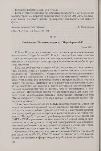Сообщение «Калининградцы на «Инрыбпроме-80». 1 июля 1980 г. // Калининградская правда. — 1980 г. — 1 июля.