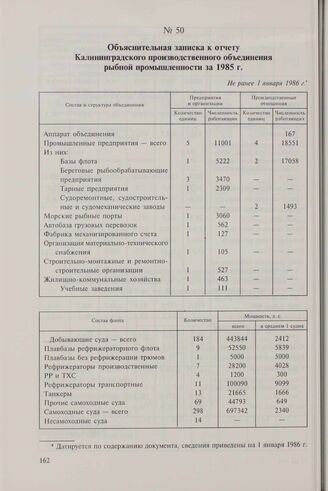 Объяснительная записка к отчету Калининградского производственного объединения рыбной промышленности за 1985 г. Не ранее 1 января 1986 г.
