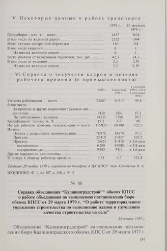 Справка объединения «Калининградстрой» обкому КПСС о работе объединения по выполнению постановления бюро обкома КПСС от 29 марта 1979 г. «О работе территориального управления строительства по выполнению планов и улучшению качества строительства на...