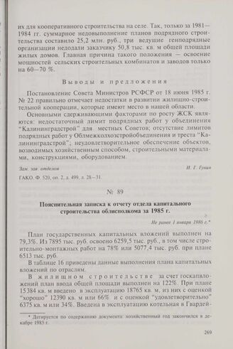 Пояснительная записка к отчету отдела капитального строительства облисполкома за 1985 г. Не ранее 1 января 1986 г. // ГАКО. Ф. 131, оп. 1, д. 337, л. 28-31.
